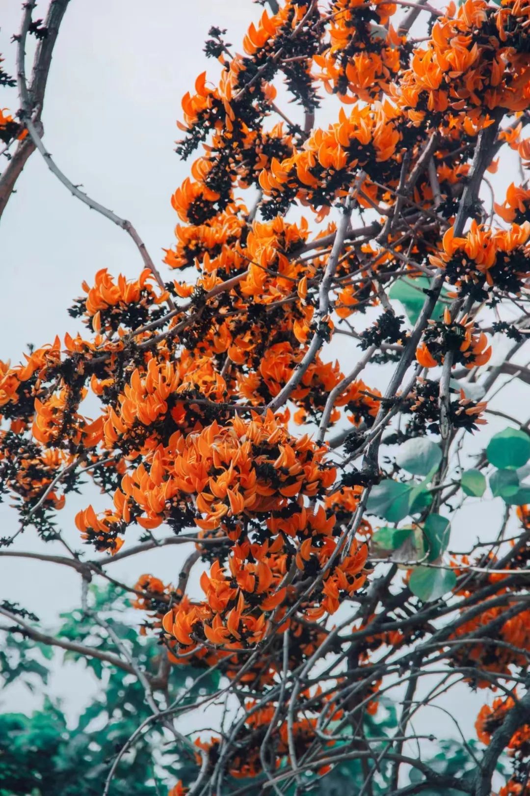 紫铆还是旧城乡人民口中的“妇女之花”,每年三月,满树繁花,远看像一团耀眼的火焰,近看又如鸟儿傲立于枝头,恰到好处地彰显了柔中有刚、神采奕奕之姿,好一簇鲜艳夺目的紫铆花!