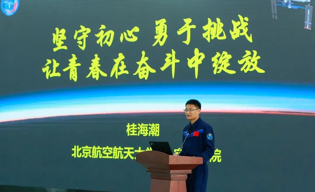 5月6日,北京航空航天大学教授、博士生导师,神舟十六号乘组英雄航天员桂海潮回到母校施甸一中作施甸教育高质量发展专场报告,给学弟学妹们带来题为《坚守初心 勇于挑战 让青春在奋斗中绽放》的精彩内容,用具体事例和切身体会生动讲述自己的奋斗青春,激励莘莘学子立志努力学习、报效祖国。