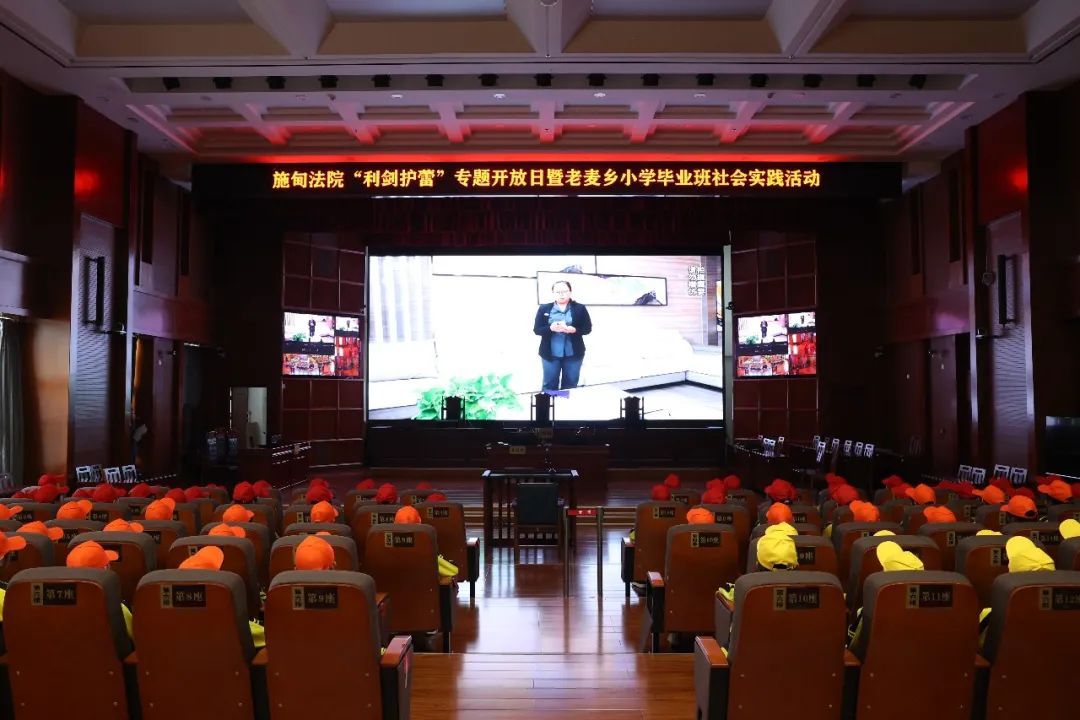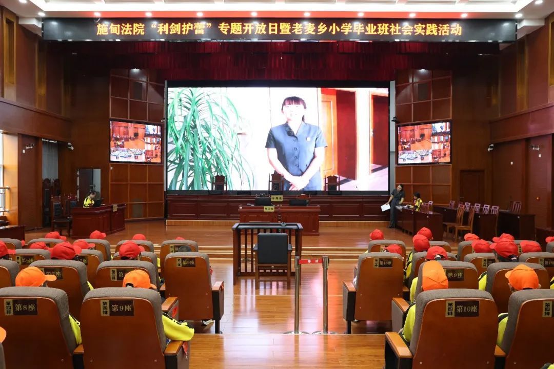 6月19日,施甸法院组织开展“利剑护蕾”专题开放日活动,老麦乡中心小学、老麦小学共300余名毕业班师生到施甸法院参观体验。在施甸法院第一法庭,师生们首先观看了《面对校园欺凌不做冷漠的旁观者》《给同学起侮辱性外号等言语欺凌要不得》等涉未成年人权益保护系列法治短片,民事、刑事专业法官结合实际案例,分别从未成年人保护和预防未成年人犯罪两个方面进行了法治宣讲,引导学生在自身合法权益受到侵害时要学会自我保护、依法维权。