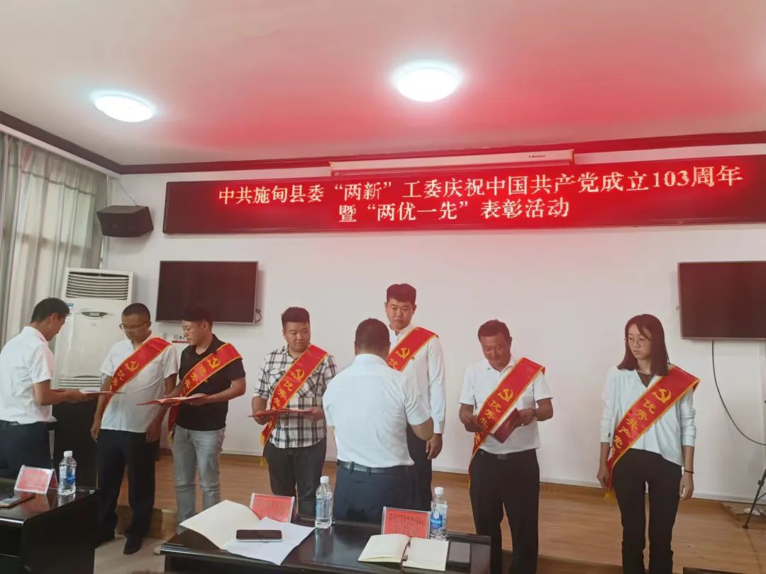 6月28日,县委“两新”工委组织25个成员单位、下设7个党支部党员以及县委社会工作部党支部、富滇银行施甸县支行党支部党员共计50余人开展了庆祝中国共产党成立103周年暨“两优一先”表彰活动。
