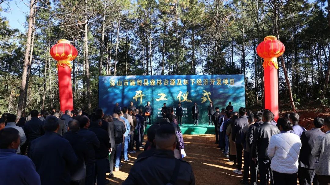 12月4日,保山市施甸县森林资源及林下经济开发项目在酒房乡麦地山开工。保山市林草局局长蔺汝涛、县委书记周耀泉、临沧耀阳生物药业公司总经理周国银、董事长周亚敏以及市县有关领导参加开工仪式。