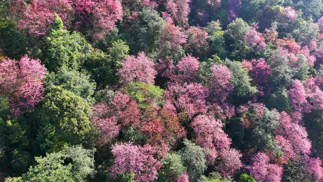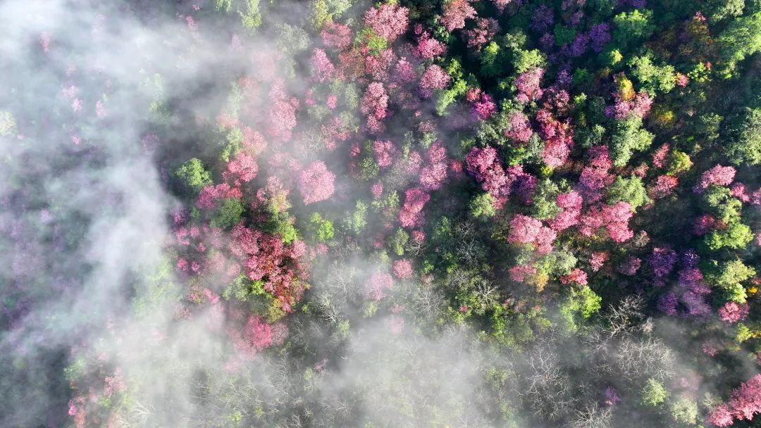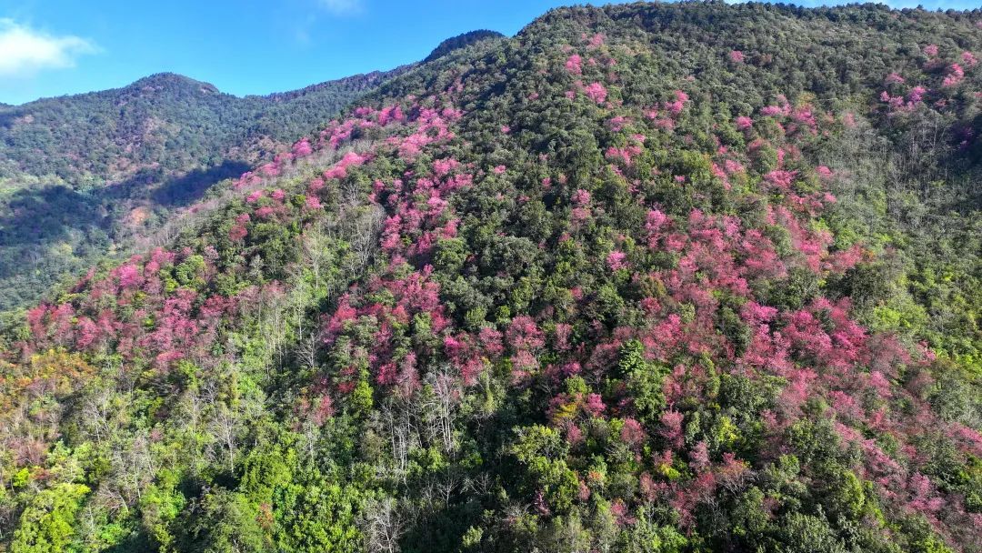 近期,施甸县善洲林场的数万棵野生冬樱花迎来盛开期,一幅雾锁冬樱鸟啼幽,云遮艳蕊舞霓裳的画卷浑然天成,美不胜收。