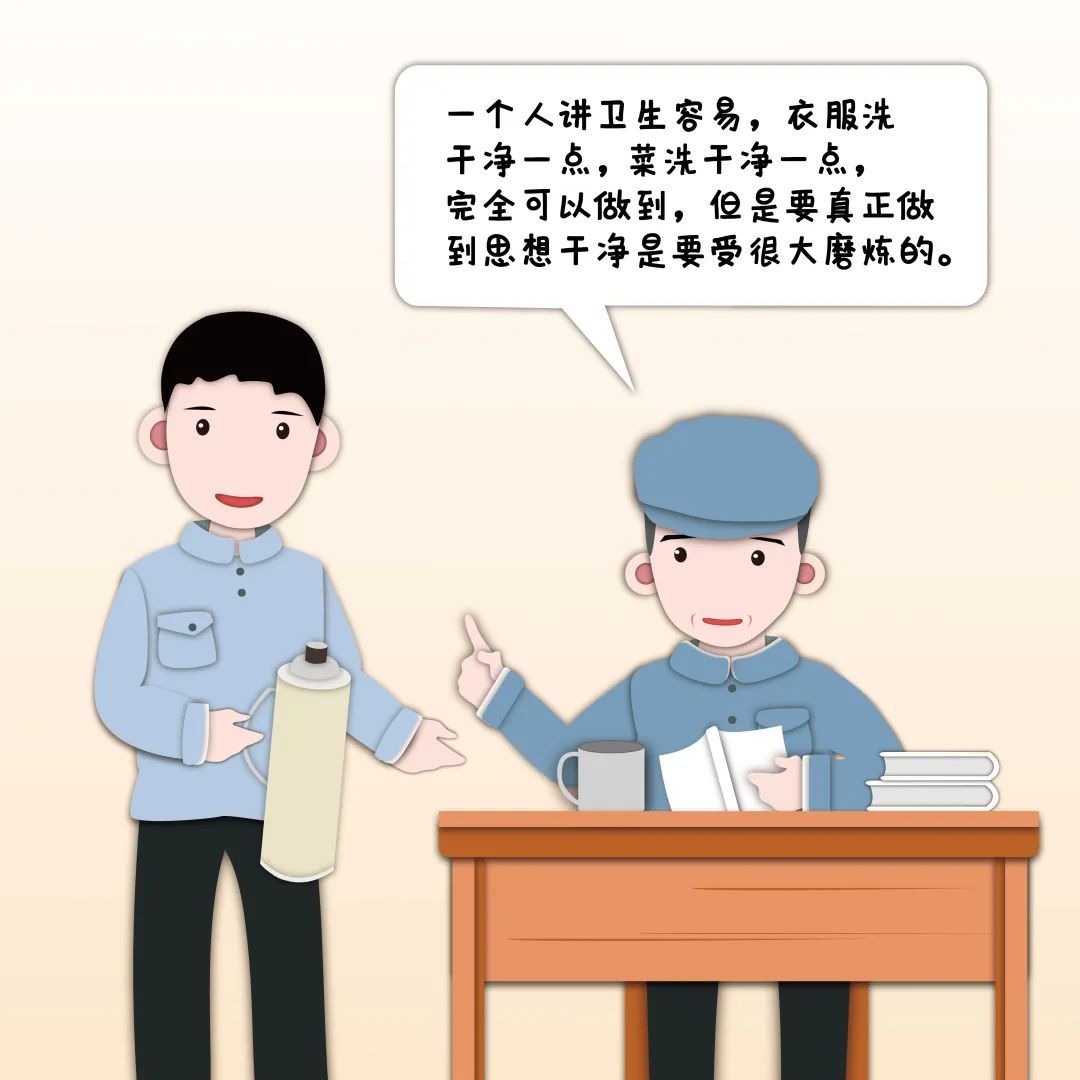 杨善洲经常跟身边工作人员讲,一个人讲卫生容易,衣服洗干净一点,菜洗干净一点,完全可以做到,但是要真正做到思想干净是要受很大磨炼的。