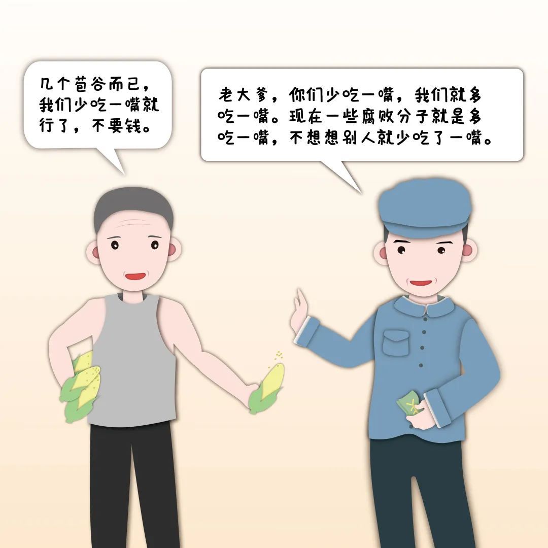 杨善洲说:“老大爹,你们少吃一嘴,我们就多吃一嘴。现在一些腐败分子就是多吃一嘴,不想想别人就少吃了一嘴。”