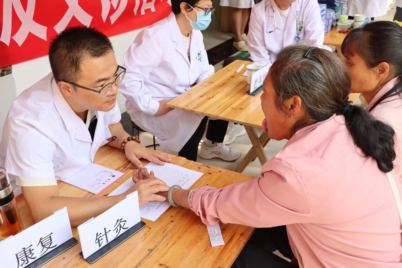 酒房乡卫生院组织爱心义诊,省级、县级中医院专家与本地医护携手,在文化走廊和中医科大厅搭建“家门口的省级医疗站”。诊疗区里,血压、血糖等常规检测有序开展,专家们针对老年病、慢性病、骨伤等病症细致问诊,结合检查结果给出个性化建议;体验区里,穴位贴敷、中医理疗等特色服务人气十足,清热解暑茶饮和安神香囊按需发放,医患互动暖意融融。从专家俯身为孩童推拿,到护士蹲下解读报告,细节处尽显医者仁心。