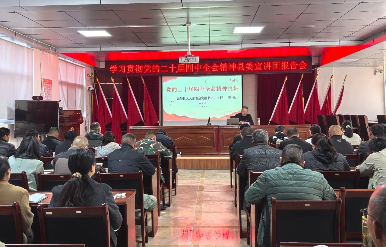 12月5日上午,学习贯彻党的二十届四中全会精神施甸县委宣讲团报告会在水长乡举行,县委宣讲团成员,县人大常委会党组书记、主任薛众作宣讲报告。