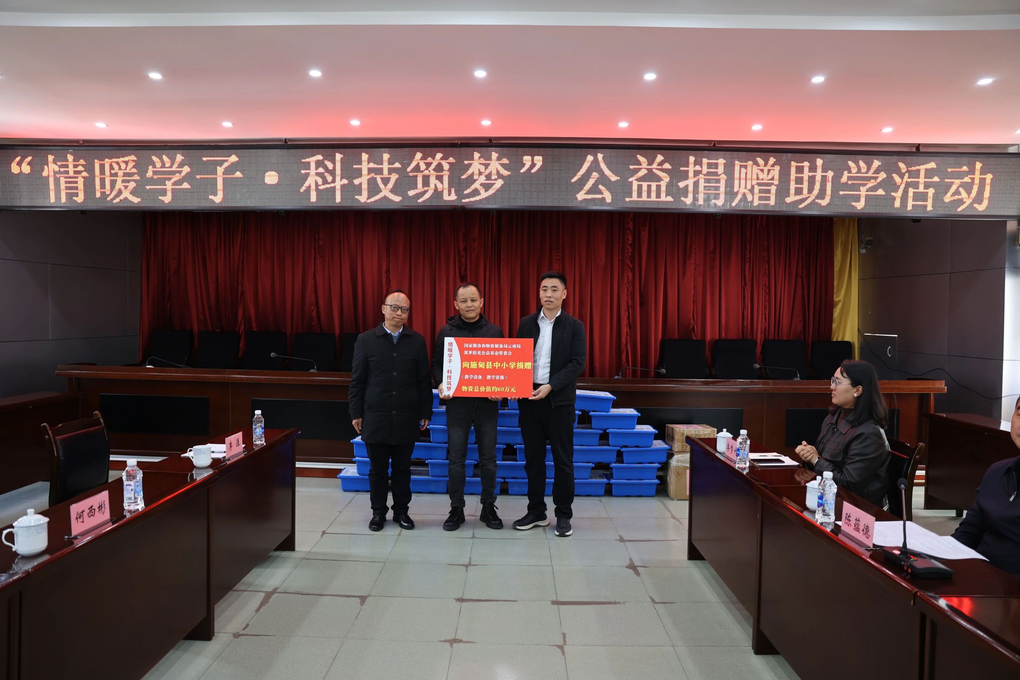 1月6日下午,国家粮食和物资储备局云南局、筑梦阳光公益基金管委会“情暖学子·科技筑梦”公益捐赠助学仪式在施甸举行。