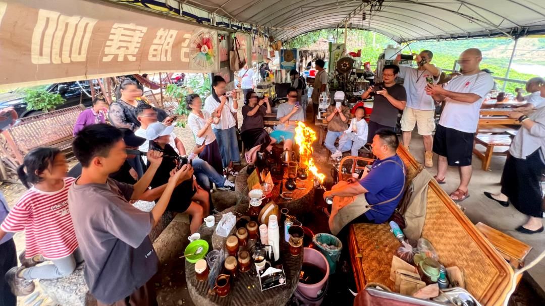 李金合在制作“火烧咖啡”,现场吸引了众多游客 保山市委宣传部 供图