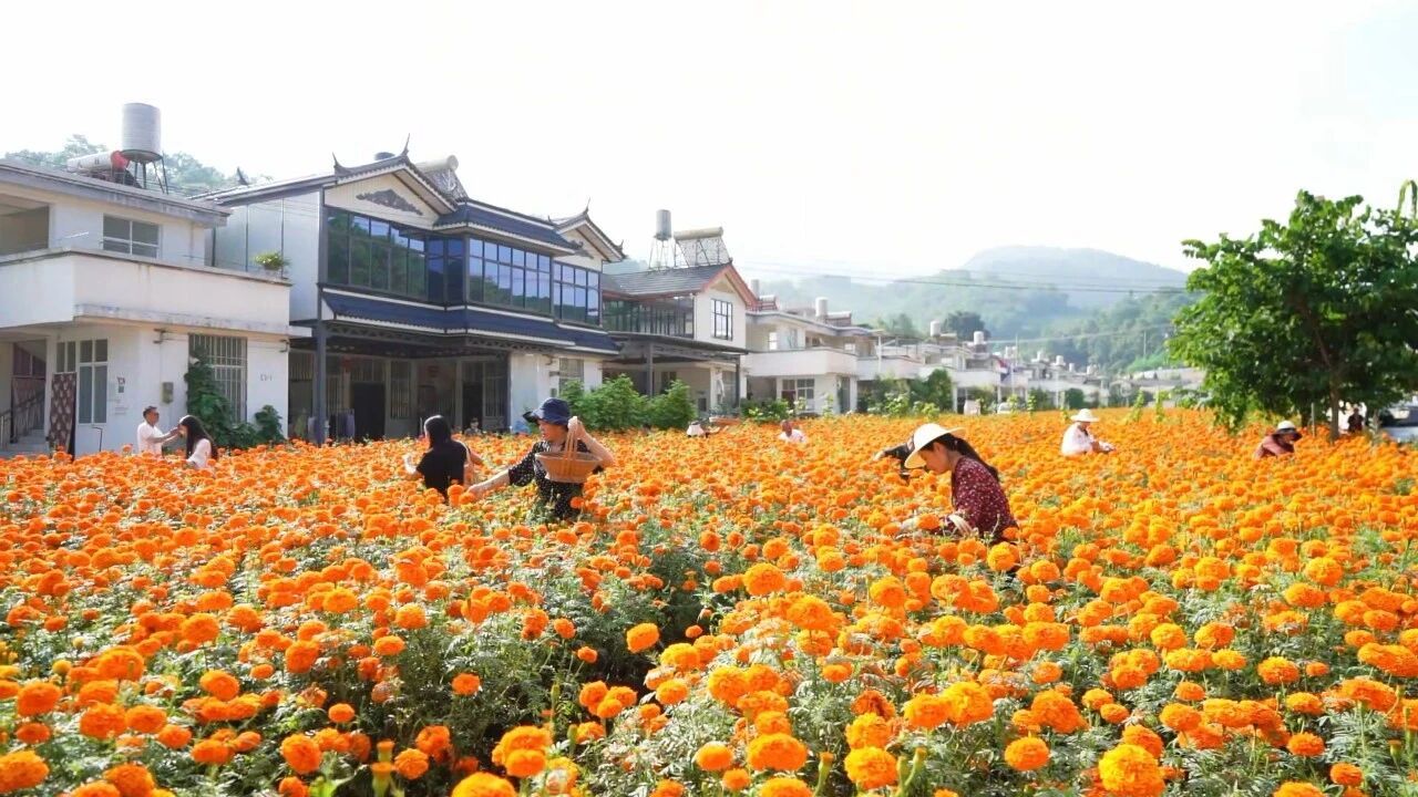 在种植甘蔗和发展红糖手工作坊的同时,张会香还依托村里的万寿菊、油菜花风光,发展起了乡村旅游。