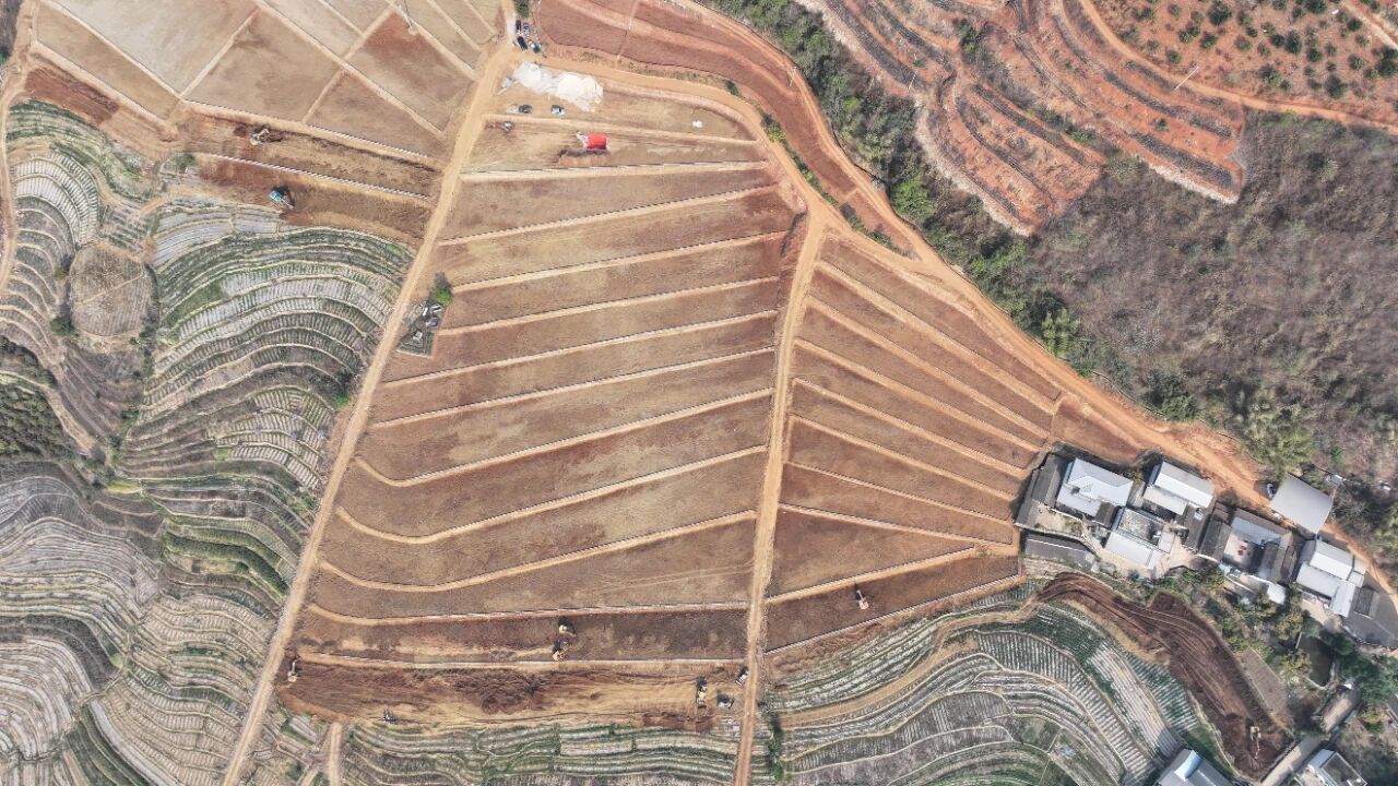 眼下正值春耕备耕时节,走进旧城乡大田坝村高标准农田建设现场,推土机、挖掘机正在忙碌作业,轰鸣声响彻山谷。曾经被村民称为“裤带田”“巴掌田”的零散地块,正一步步褪去旧貌,变成层层叠叠、平整连片、渠路配套的高产稳产农田。