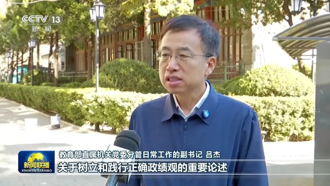 教育部直属机关党委分管日常工作的副书记 吕杰:我们要深入学习贯彻习近平总书记关于树立和践行正确政绩观的重要论述,牢牢把握教育的政治属性、人民属性、战略属性,把学习教育与推动教育中心工作、整治形式主义为基层减负结合起来,切实为人民出政绩、以实干出政绩。