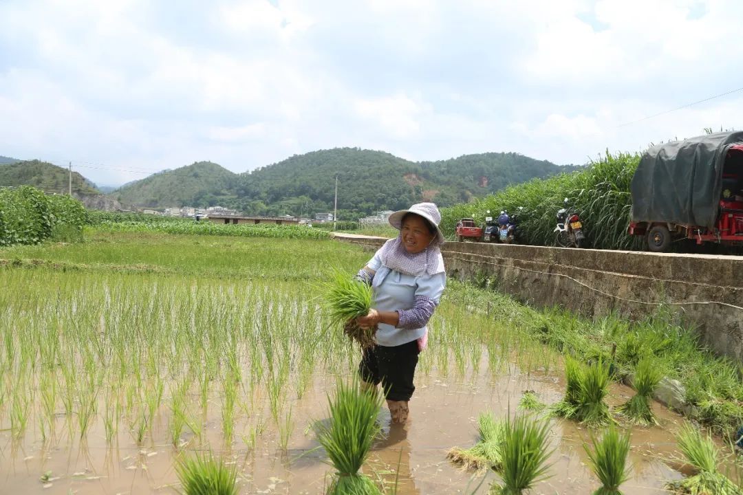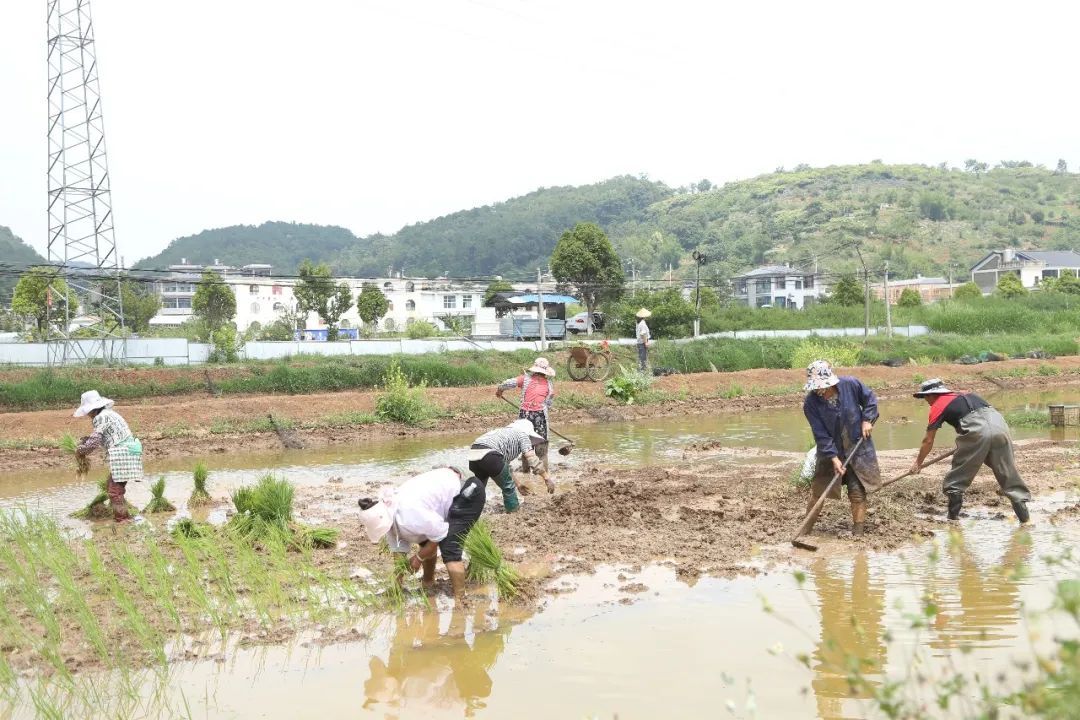 蒜园村村民杨发娣家好多年不栽秧了,今年栽上了秧感觉特别亲切。邀约了邻居老姐妹来帮忙,大家重操旧业,手艺一点也没有落下,干起活来特别有精神。