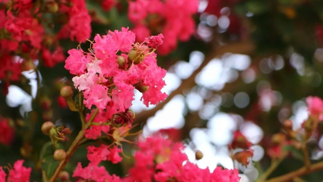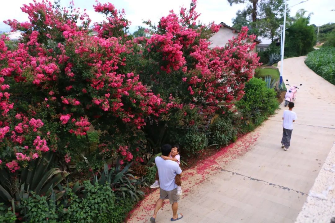 “门前种株紫薇花,家中富贵又荣华。”人们总喜欢在自己院子栽种火把花,象征富贵荣华之意的火把花在夏日里绚烂地绽放着,那繁盛艳丽的样子实在是叫人喜欢不已。每每走近树下,都能听见蜜蜂忙碌的声音。花朵随风翩翩起舞,随热浪徜徉,烘托出一个明媚生机的夏日。