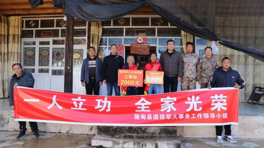 1月24日,县人武部、县退役军人事务局及何元乡有关负责人为荣立三等功的现役军人杨品龙家属送去了立功喜报。