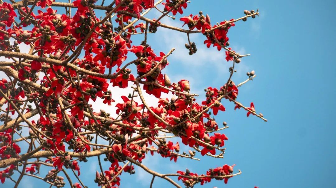 春寒未散,晨曦初露,旧城乡的木棉花悄然破蕾、盈盈盛放,晕染出一片绮丽。当地人口中的“攀枝花”,恰似春日使者,擎着炽热的花盏,一朵朵、一簇簇,沿着枝桠肆意舒展,似烈烈燃烧的云霞,烧沸了一城春色,勾勒出旧城乡火红的春天。
