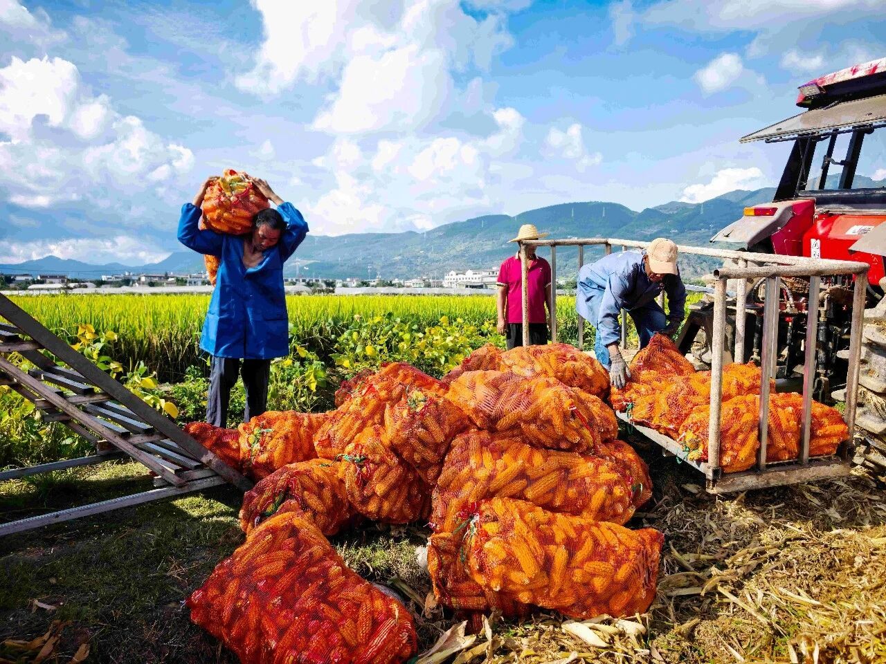 近日,仁和镇复兴村制种玉米陆续收获,村民来回穿梭,掰玉米、入袋、装车,整个过程有条不紊,呈现出一派繁忙而有序的劳动景象。