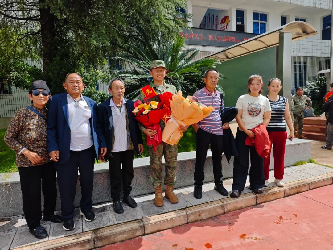 “参军从不是口号,是刻在骨子里的传承。”今秋刚应征入伍的杨锦辉话语坚定,他昂首挺胸,双拳紧握。在他眼中,身上的新军装与胸前佩戴的红花格外耀眼——他即将踏着父亲的足迹,追随堂爷爷、大爷爷、堂伯与堂哥的脚步走进军营。那攥紧的拳头里,仿佛握着家族报国的接力棒,而他接过的,正是一份沉甸甸的责任。“我想成为他们那样的人,让‘杨家参军报国’的名字,在我们这代依旧响亮。”杨锦辉说。