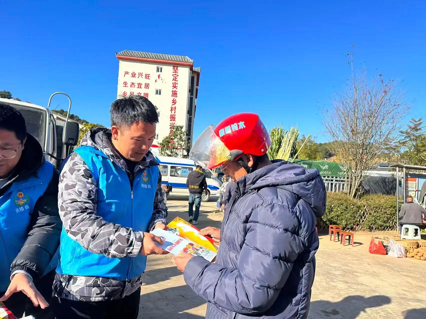 活动现场,工作人员化身“普法摊主”,通过悬挂“12.4宪法日宣传活动”“法律援助手牵手和谐社会心连心”等宣传横幅、设置法律咨询台、发放普法宣传资料等形式,向过往群众普及宪法核心要义、公民基本权利和义务等基础法律知识。针对群众关注度高的婚姻家庭纠纷、邻里矛盾调解、电信网络诈骗防范、交通安全、禁毒反诈等热点问题,工作人员结合基层典型案例“以案释法”,用通俗易懂的“方言土话”拆解法律条文,手把手指导群众如何运用法律武器维护自身合法权益。同时,志愿者走进集市商铺、摊位,向经营户和过往群众发放《中华人民共和国宪法》《中华人民共和国民法典》等宣传资料,耐心解答群众提出的法律疑问,引导群众自觉学法、守法、用法。