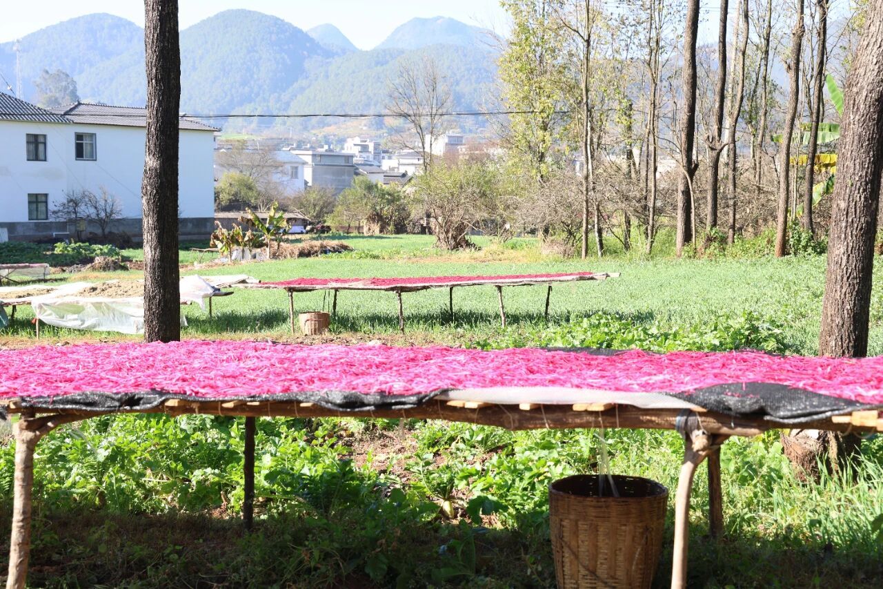 冬日时节,走进万兴乡万兴村,连片的红萝卜田迎来了丰收季。田间地头,鲜嫩的红萝卜长势喜人;村庄院落里,一排排长长的晒笆整齐铺开,红艳艳的萝卜丝密密匝匝铺在其上。在暖阳的映照下,宛如一条条鲜艳的彩带,扮靓了冬日的村落。