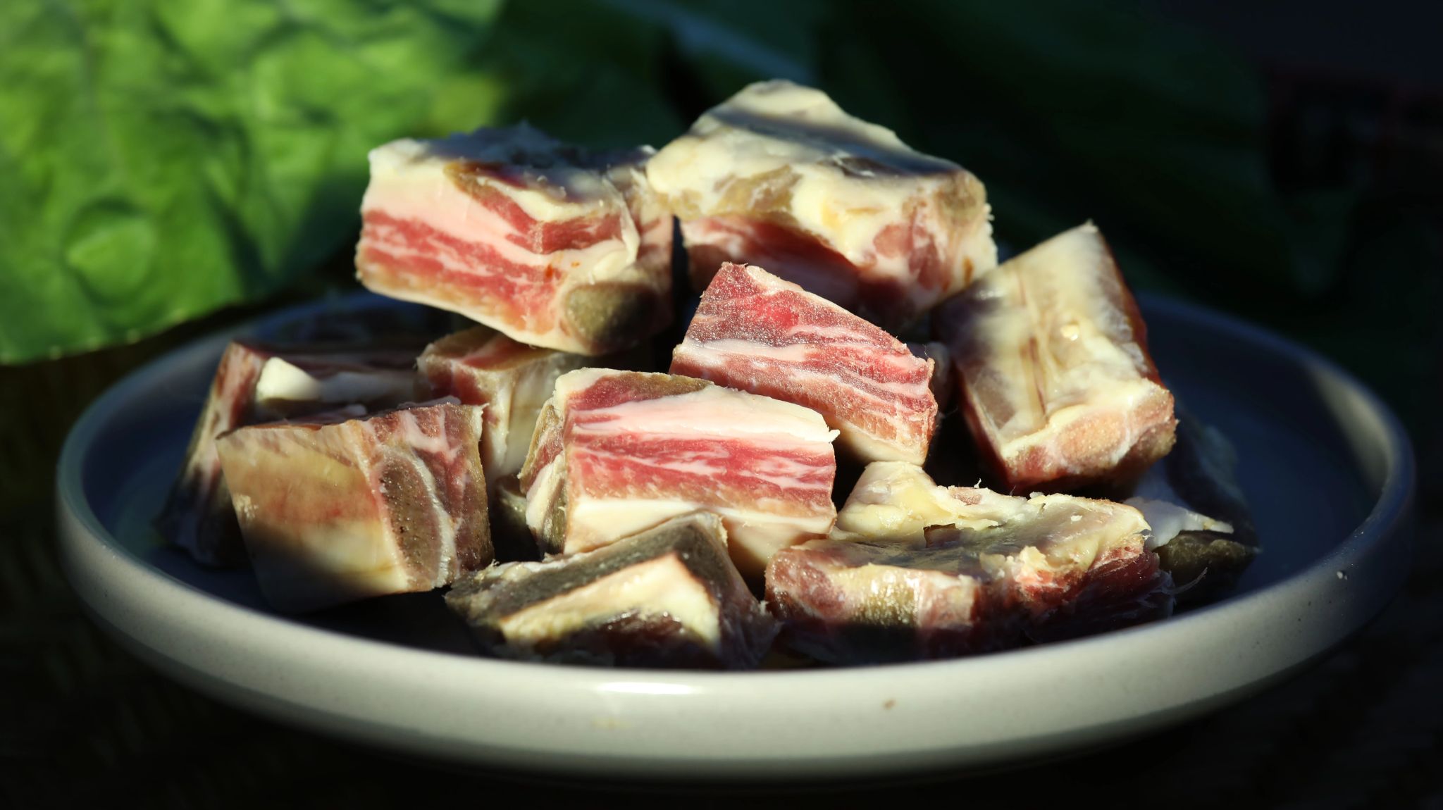 这里的腊味,从选材便见真章。施甸人认准的是本地散养的黑猪,饲养期足,肉质紧实而醇厚,是做腊排骨的上佳食材。智慧的施甸人懂得如何与时间合作,将盐巴和草果面均匀涂抹在排骨上反复揉搓,让香料顺着肌理渗入深处。