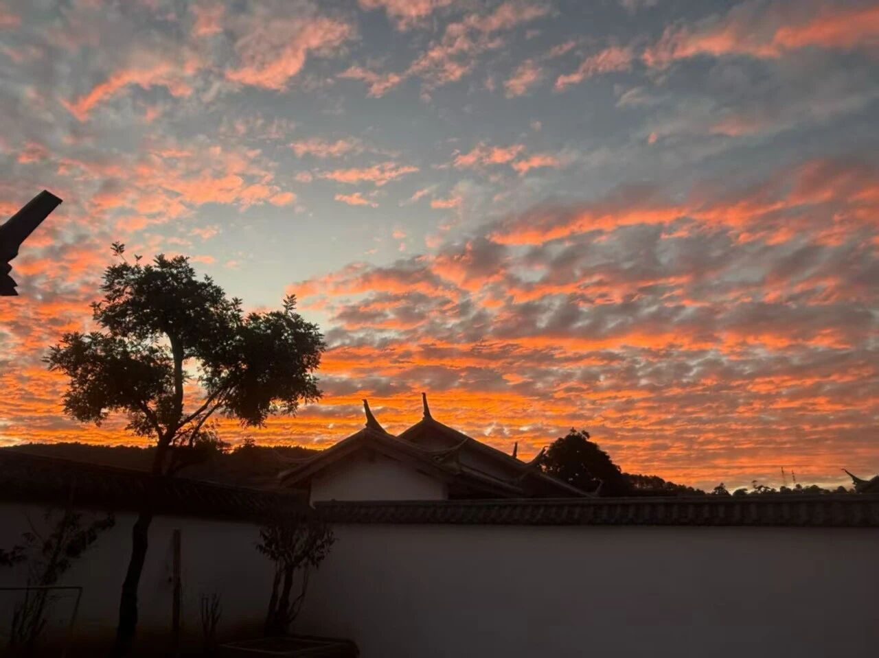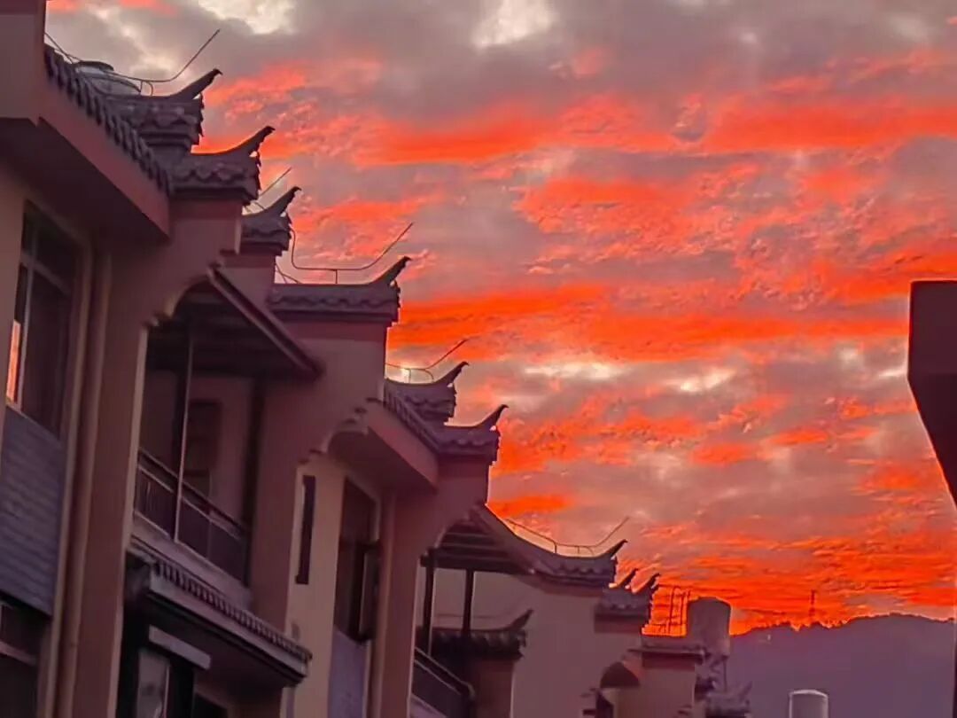 当光的诗篇抵达高潮,人间响起了轻柔的和声。孩子们停下脚步,指着天边燃烧的骏马与城堡;归家的人摇下车窗,眼眸里映满温柔的光;散步的老者驻足,皱纹里收藏着霞光的温度。炊烟袅袅上升,与天际的紫霭相拥。分不清哪一缕来自人间灶火,哪一抹来自天边云霞。尘世的温暖与天空的壮丽在此刻对话,无声却深情。在这片被山水眷顾的土地上,自然的馈赠总是慷慨的。生活于此的人们,每日与这样的美相遇,平凡的日子也因此镀上了诗意的光泽,像是被光亲吻过的日常。