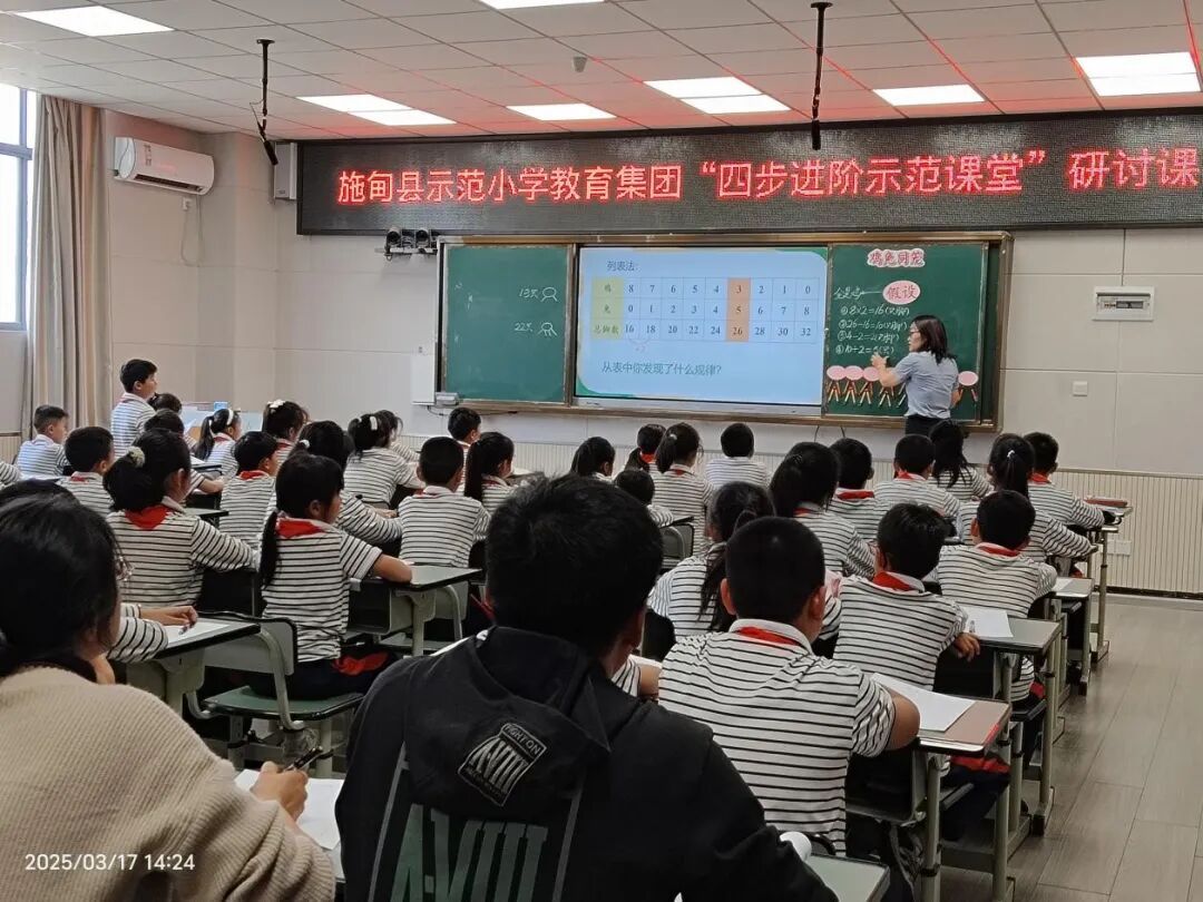 教学质量是学校发展的生命线,示范小学深耕课堂改革,打造高效课堂,教学质量在全县领跑。打造“四步进阶示范课堂”教学模式,通过“导入新课明目标、问题驱动自主学、生生互学师点拨、举一反三现成效”四个环节,实现从“以教为主”向“以学为中心”的深度转型。