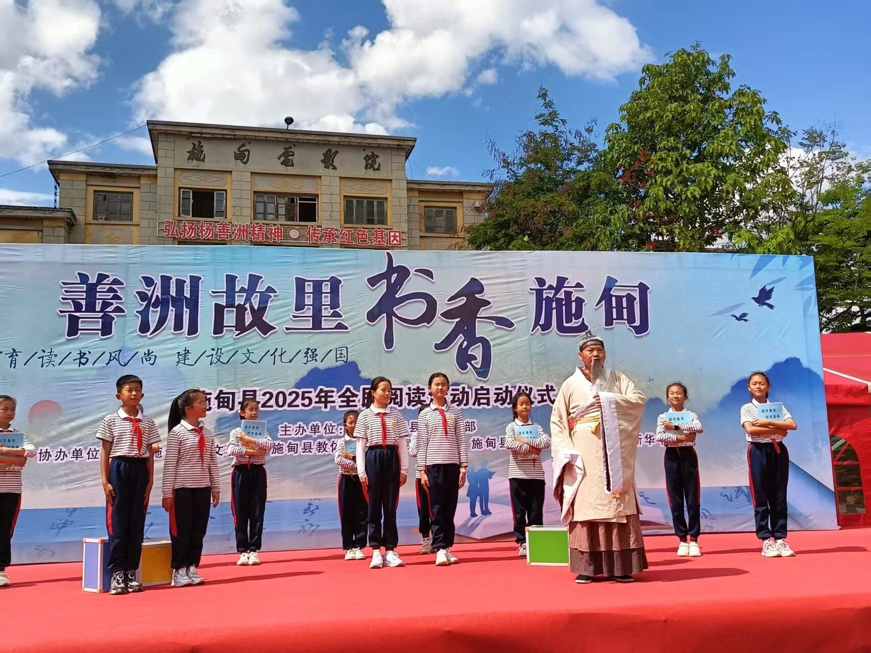 学校以“培养有书卷气的示范少年”为目标,构建“1+1+N”分级阅读体系,以语文教材必读书目和关联篇目为核心,搭配主题拓展书目,形成“精读一本、带读一类”的阅读模式。推行“每日三读”“每周三讲”“每月共读”常态化机制,晨读诵经典、放学练背诵、亲子共阅读,国旗下宣讲、校园分享、杨善洲精神传颂,让阅读融入校园生活方方面面。