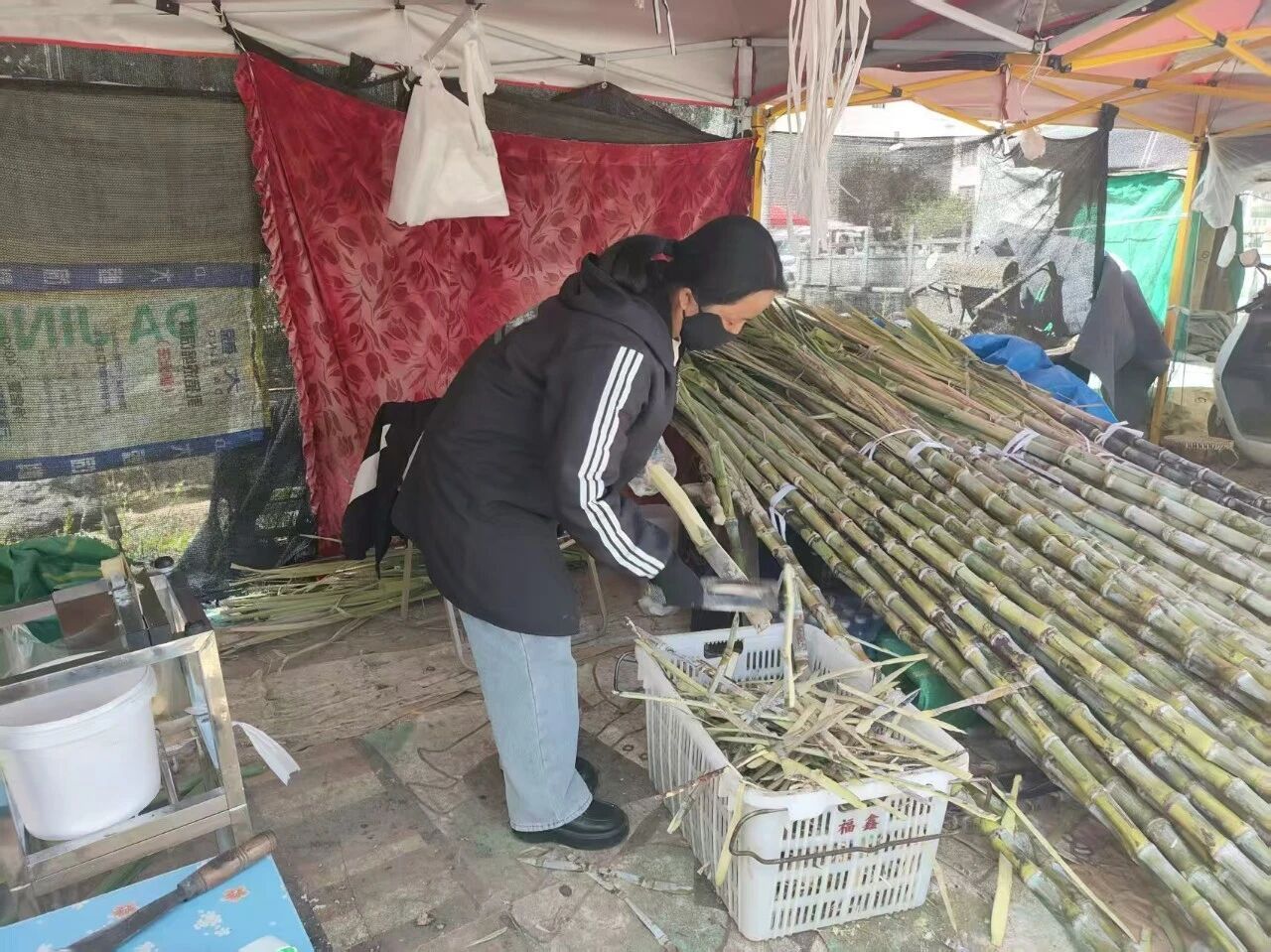 赶集的乐子,从桥头就开始了。一捆捆黄皮甘蔗扎得像小山,摊主手里的刀“唰唰”几下,皮就削得干干净净,再“咔嚓”截成段,方便老人娃娃拿着吃。日子好了,这点甜头,也讲究个舒坦。再往前瞅,野生的“挂蜂蜜”稠得挂丝儿,那是跑山人钻老林子,险巴巴才掏换来的宝贝,金贵着呢,都说它能当药引子,是冬天最养人的甜。