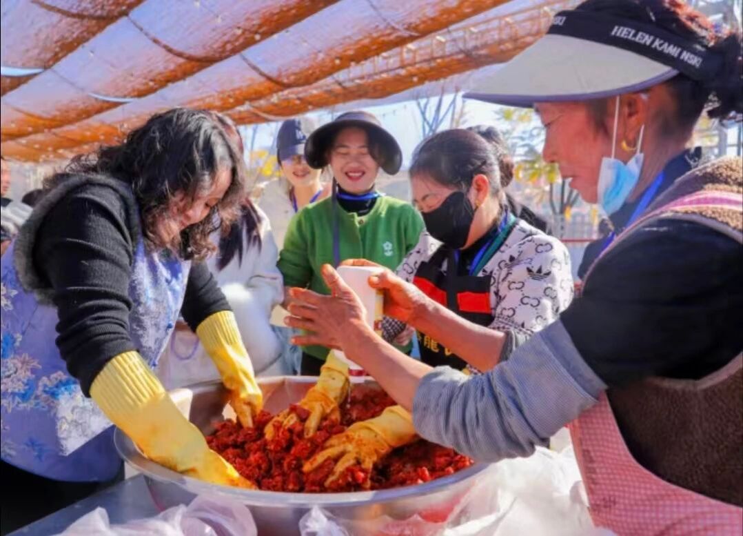 不一会儿,一大盆骨头鲊拌好了,红彤彤的,看着就喜庆。大家掏出手机拍照,要把这难得的体验记录下来。这不只是一次手工体验,更是走进了施甸人的生活,触摸到了这片土地的烟火气。