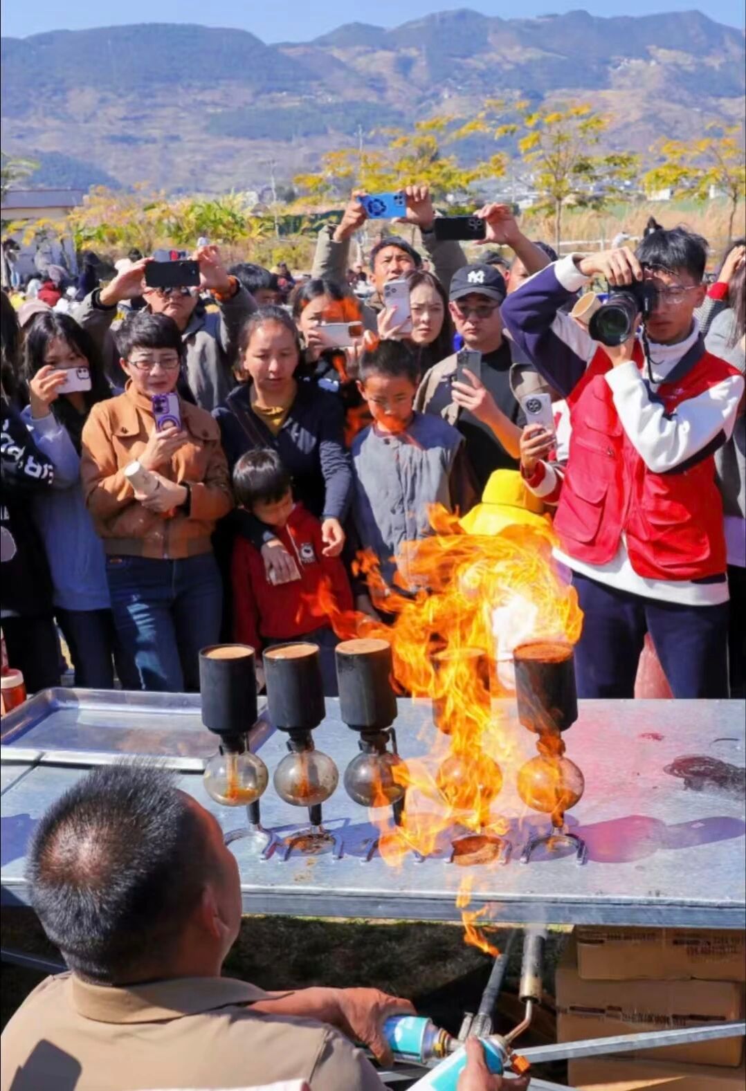 现磨的咖啡豆在火上焙烤,焦香四溢。冲泡后的咖啡,与年猪饭的丰腴形成独特的搭配——解腻,提神,恰到好处。火焰在杯中升腾,香气弥漫。小朋友们瞪大了眼睛,大人们纷纷举起手机。