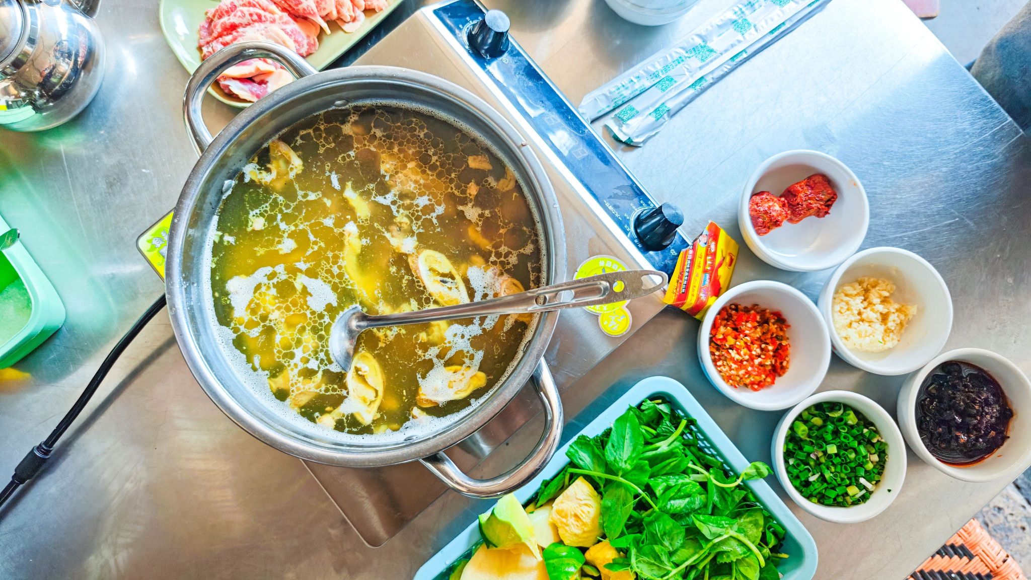 一锅好肉,少不了丰富的配菜。店家每日采购新鲜蔬菜,清脆爽口的蔬菜既能中和牛肉的醇厚,又为口感添彩。芹菜与薄荷是解腻增香的关键,薄荷的清冽与芹菜的鲜香融入汤汁,一口便能驱散油腻,让味蕾回归清爽。应季时,店家还会加入本地特色的撵山狗(罗勒),其独特香气与牛肉堪称绝配,成就专属时节的限定风味,成了食客们惦念的时令之味。
