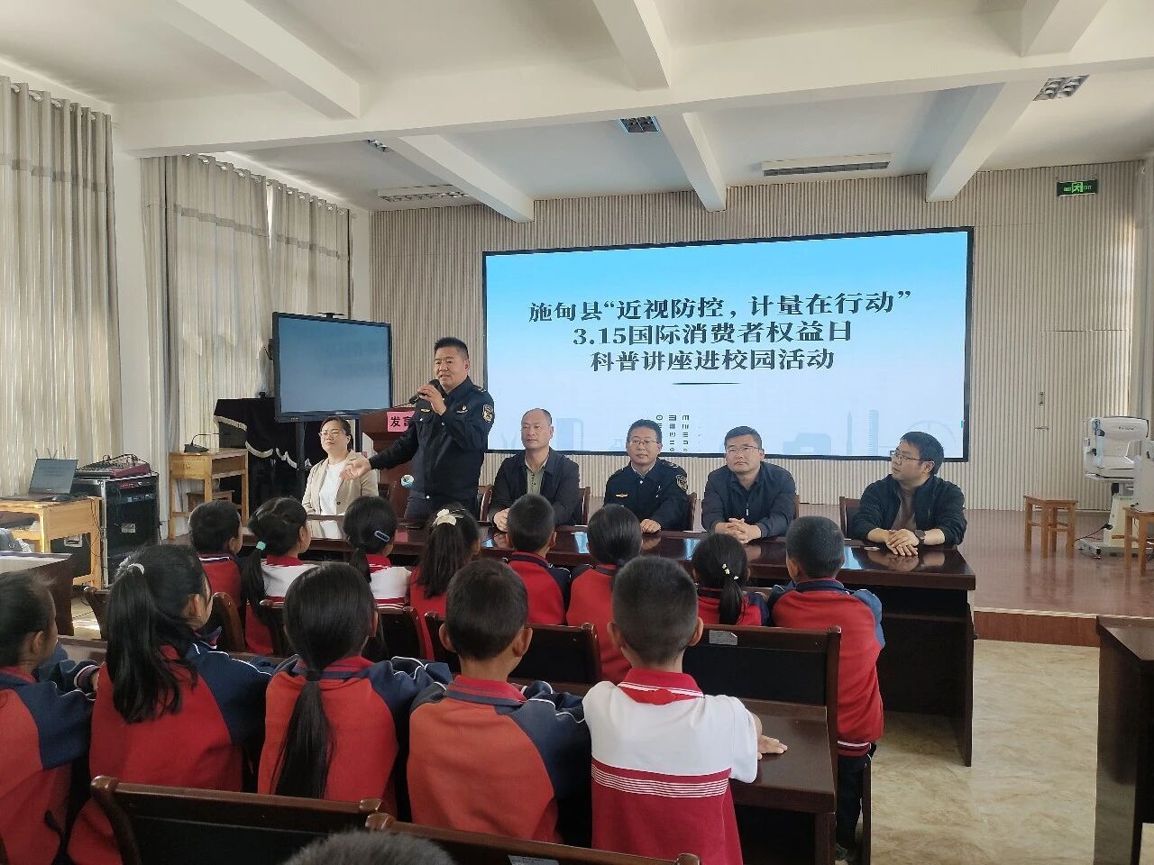 为扎实开展2026年“3·15”国际消费者权益日计量宣传工作,普及计量科学知识,引导青少年科学护眼、有效预防近视,近日,施甸县市场监督管理局联合县教育体育局,在何元中心小学开展“近视防控 计量在行动”主题宣传活动,多措并举守护青少年视力健康。