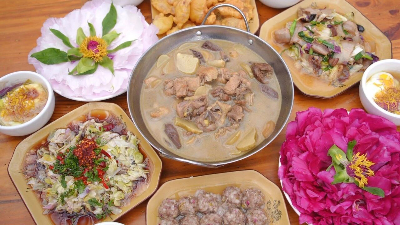 牡丹花酥、凉拌牡丹花、牡丹花炒腊肉等菜肴,融合了乡土风味与春日清香。