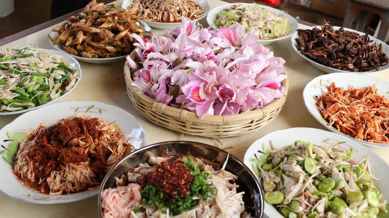外焦里嫩的白露花酥则别有一番风味。选取白露花骨朵,将土鸡蛋加入草果面、盐巴,顺时针搅拌成糊状,再将新鲜花苞或花瓣挂上面糊入油锅炸至金黄,清香酥脆,回味无穷。