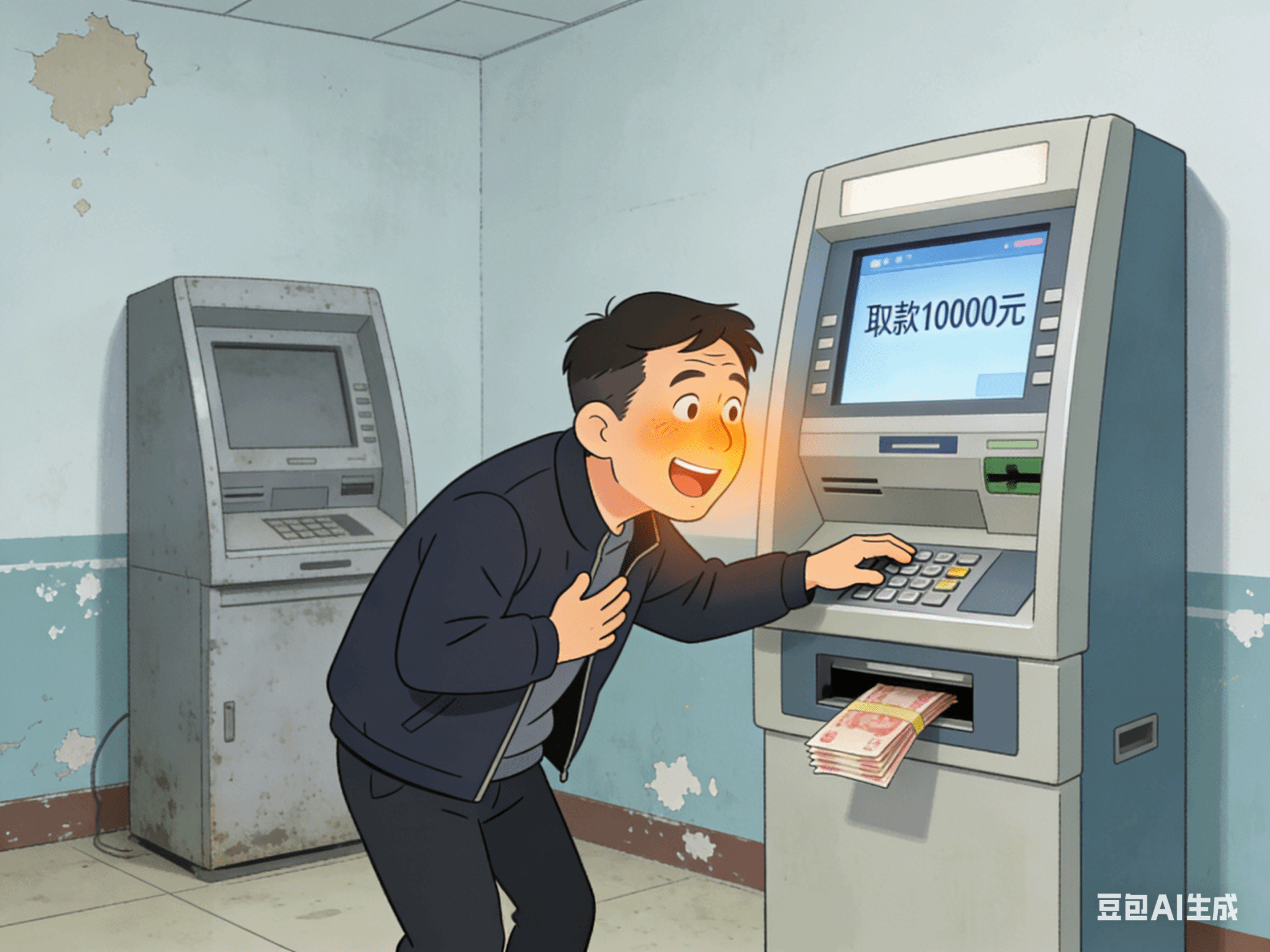 那天中午1点多,老杨上街到信用社的自助取款机取钱。前面那个人刚走,他插卡时发现不对劲——机器里还留着一张卡,屏幕还停在“查询余额”的界面。显然,前一个人忘了取卡。老杨四下看了看,没人注意。他按下“取款”键,试探着输入了一个金额:10000元。钞票哗啦啦吐了出来。他心跳加速,赶紧把卡和钱装进口袋,匆匆离开。