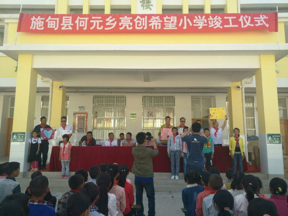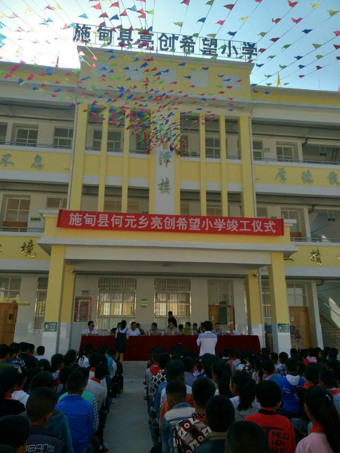 2017年5月24日,施甸县何元乡亮创希望小学正式落成并投入使用。云南青基会秘书长倪志伟、亮创教育助学基金负责人谢永强等一行9人在施甸团县委、县教育局领导陪同下,到洼寨小学举行了竣工典礼,与全校师生欢聚校园,共同见证这激动人心的时刻。