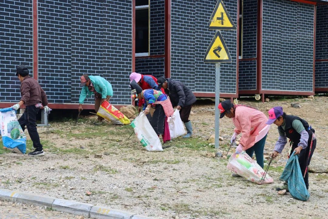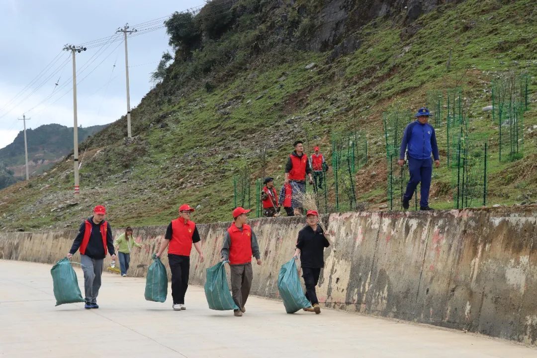 活动现场,群众和志愿者们干劲十足,分工明确,呈现出一派热火朝天的劳动景象。志愿者和群众有的手拿垃圾袋、钳子、扫帚等工具对草皮街路面和草坪的垃圾进行清理,有的拿着锄头在羊场至木老元公路沿线进行挖坑,播种桤木树种。
