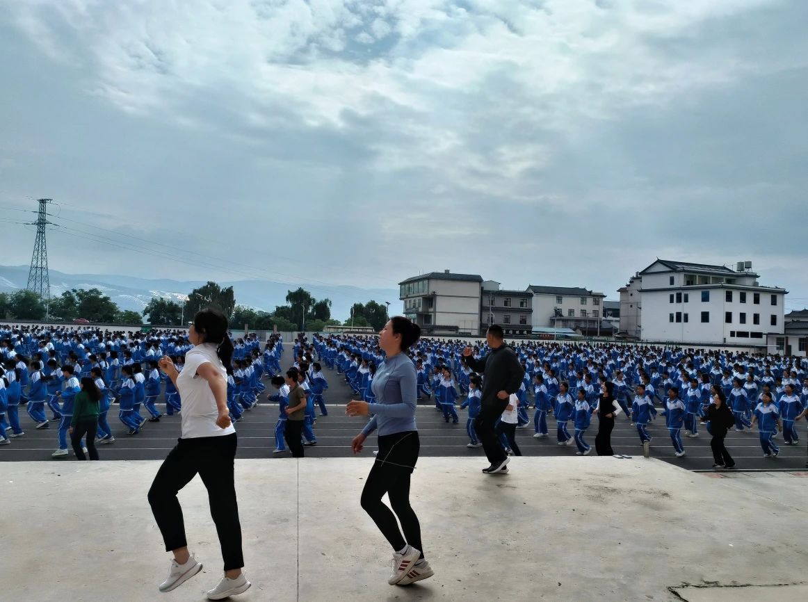 随着动感音乐在校园上空响起,施甸县第二完全中学的全校师生如灵动的音符,迅速在操场集结,以整齐划一的步伐开启每日的阳光健身操“必修课”。在体育老师的带领下,学生们伸展、跳跃、平衡,每一个动作都规范有力。这些科学设计的健身操动作,不仅有效锻炼了学生们的肌肉力量和身体协调性,更在潜移默化中培养了集体协作意识。