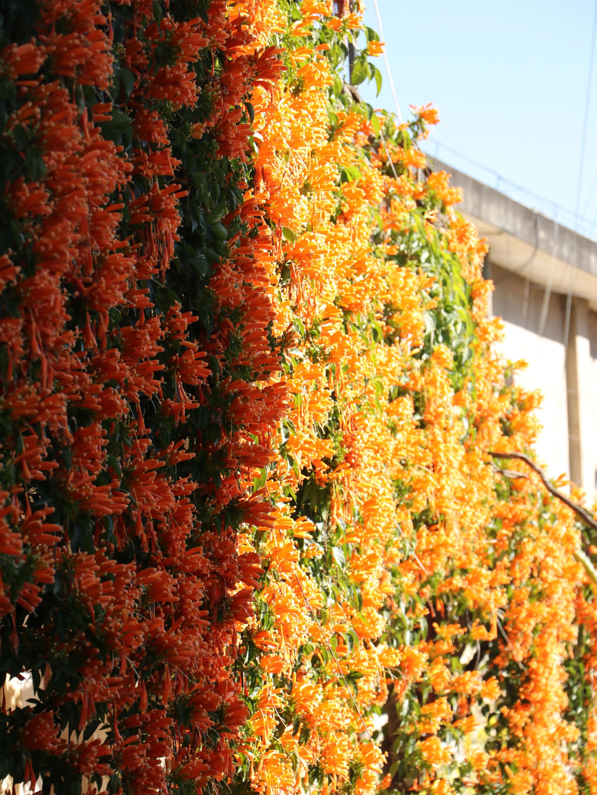 岁末年初,当由旺镇的大多数植物静静休息,炮仗花却以一抹绚烂的橙红,点亮了整个冬天。它沿着院墙、栅栏、屋檐攀爬绽放,簇簇成串、累累垂挂,犹如一帘帘热烈的“花瀑”,在暖阳下摇曳生辉。