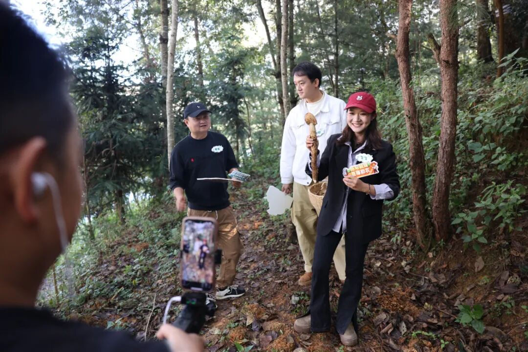 10月22日,施甸县融媒体中心主播团队到姚关镇朱市冲,以“山林寻菌+工厂探秘+美食品鉴”的沉浸式直播形式,带网友解锁秋末野生菌的鲜美密码,助力当地生态农产品走向更广阔市场。