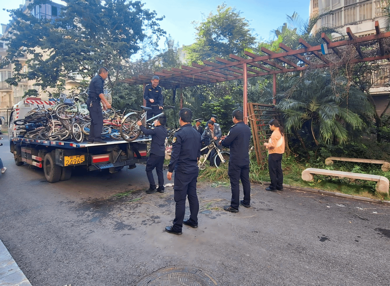 行动现场,工作组分工协作、高效推进,依法对排查确认的“僵尸车”开展集中清理。此次整治共清运各类“僵尸车”105辆,其中摩托车15辆、自行车90辆。针对不同车辆类型,工作组还制定了差异化处置方案:15辆摩托车由执法局联合物业通过小区公告栏、业主微信群公示,公示期内业主可凭车辆相关证件到物业办公室认领;90辆自行车则统一转运至老一中指定区域存放,后续将依据相关规定完成分类处置。