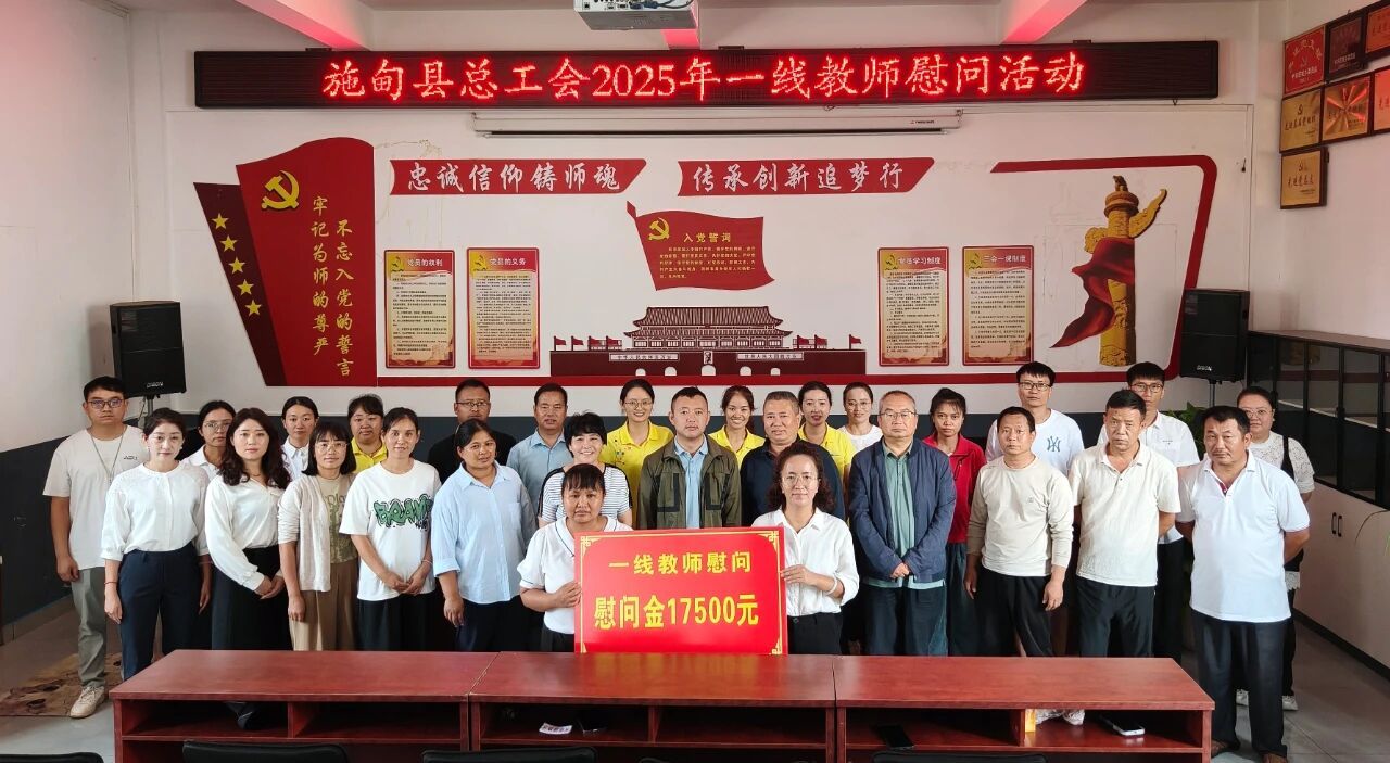 近日,施甸县总工会联合县教体局开展一线教师慰问活动,为500名长期坚守教学岗位的教师送上慰问金,总投入25万元。这是继教师节之后,施甸再次以实际行动关爱一线教育工作者,助力施甸教育高质量发展。