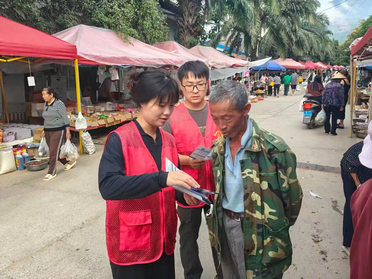 当天,旧城乡党群服务中心组织社保工作人员,在人员密集区域设立流动政策咨询点,以“流动咨询+现场答疑”的模式,向沿街商铺经营者和赶集村民宣传社保、就业创业政策。