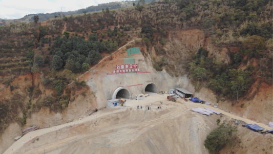 【解说】与施链高速第一座大桥桥梁吊装同步完成的,还有施链高速两碗水隧道,该条隧道是施链高速开工建设以来首条贯通的隧道,位于施甸县旧城乡李来村境内,左幅288米,右幅283米,虽然路途不长,但施工难度系数较高,风险较大。于2020年8月11日开始掘进,共历时120天,右幅2020年12月9日贯通,比原计划工期目标提前30天。