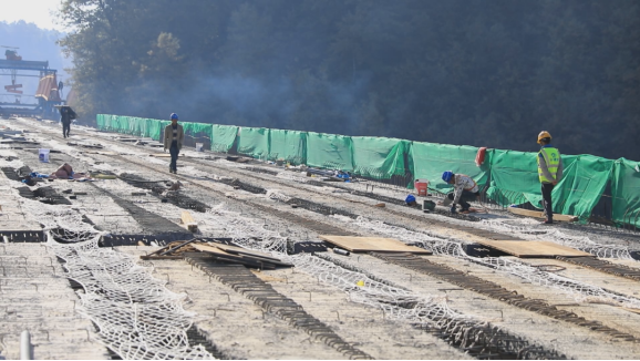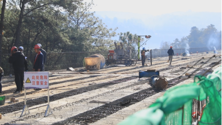 现在全县的情况就是所有的隧道,就是27座隧道,75个工作面已经全部展开正常开始施工,我们的桥梁,还有路基也是全部展开施工。到现在为止,我们的隧道已经完成了23.5公里,完成比例是29%。下一步,我们一是狠抓隧道的正常施工;第二桥梁还是以预制场为中心,向周围辐射,路基全面开花,力争明年施链高速主线通车。