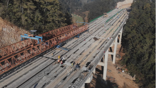 施链高速第一座桥梁吊装完成 第一条隧道顺利贯通