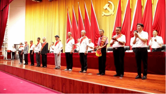 会上,20名新党员进行了入党宣誓,参会的老党员重温了入党誓词。县领导为老党员代表颁发“光荣在党 50 年”纪念章,对先进基层党组织、优秀共产党员、优秀党务工作者进行了颁奖。