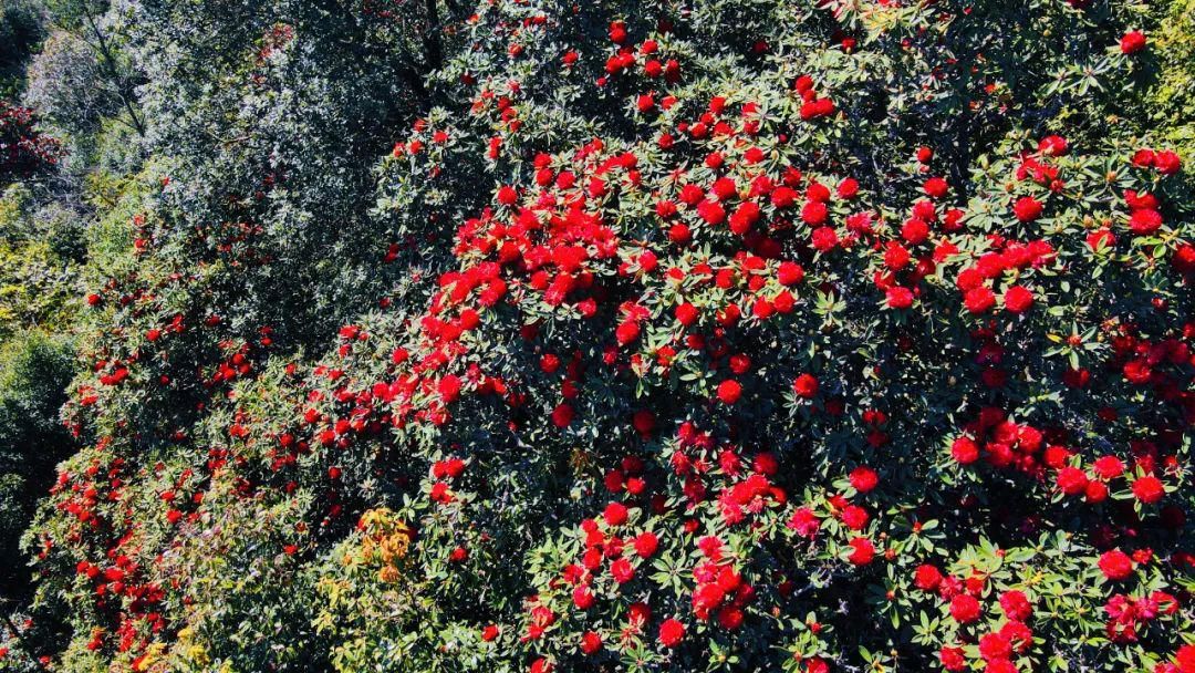 善洲林场森林植被丰富、生态良好,近年来,施甸县全面推行林长制,野生动植物的保护和管理工作得到显著加强,为大树杜鹃的生长提供了良好的生长环境,每年都会如期绽放,灿若云霞、炽如烈火。