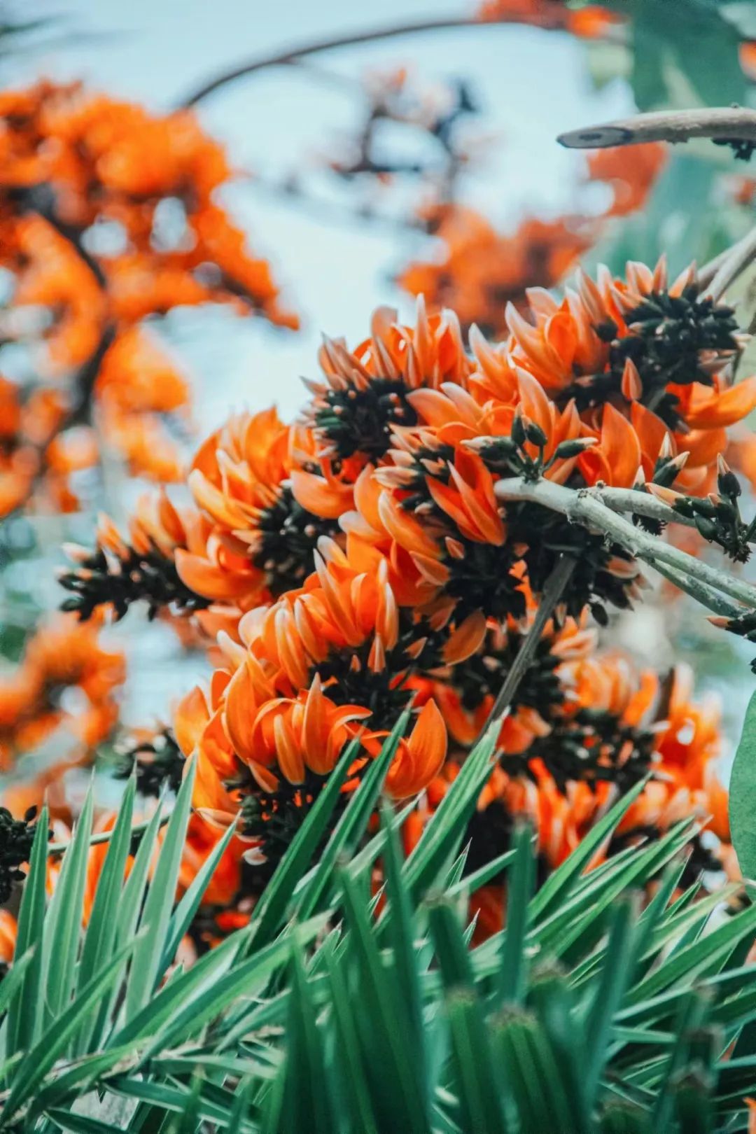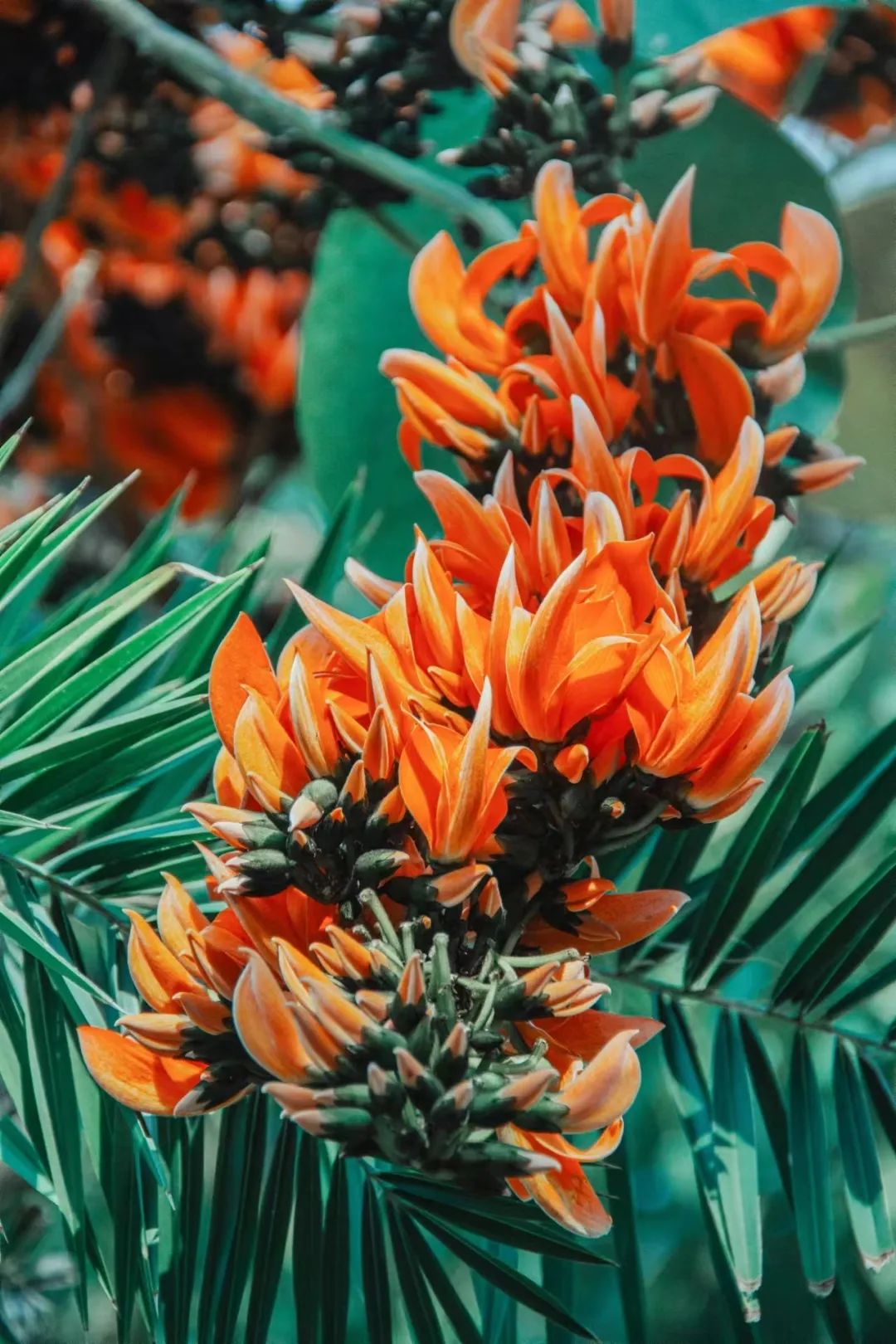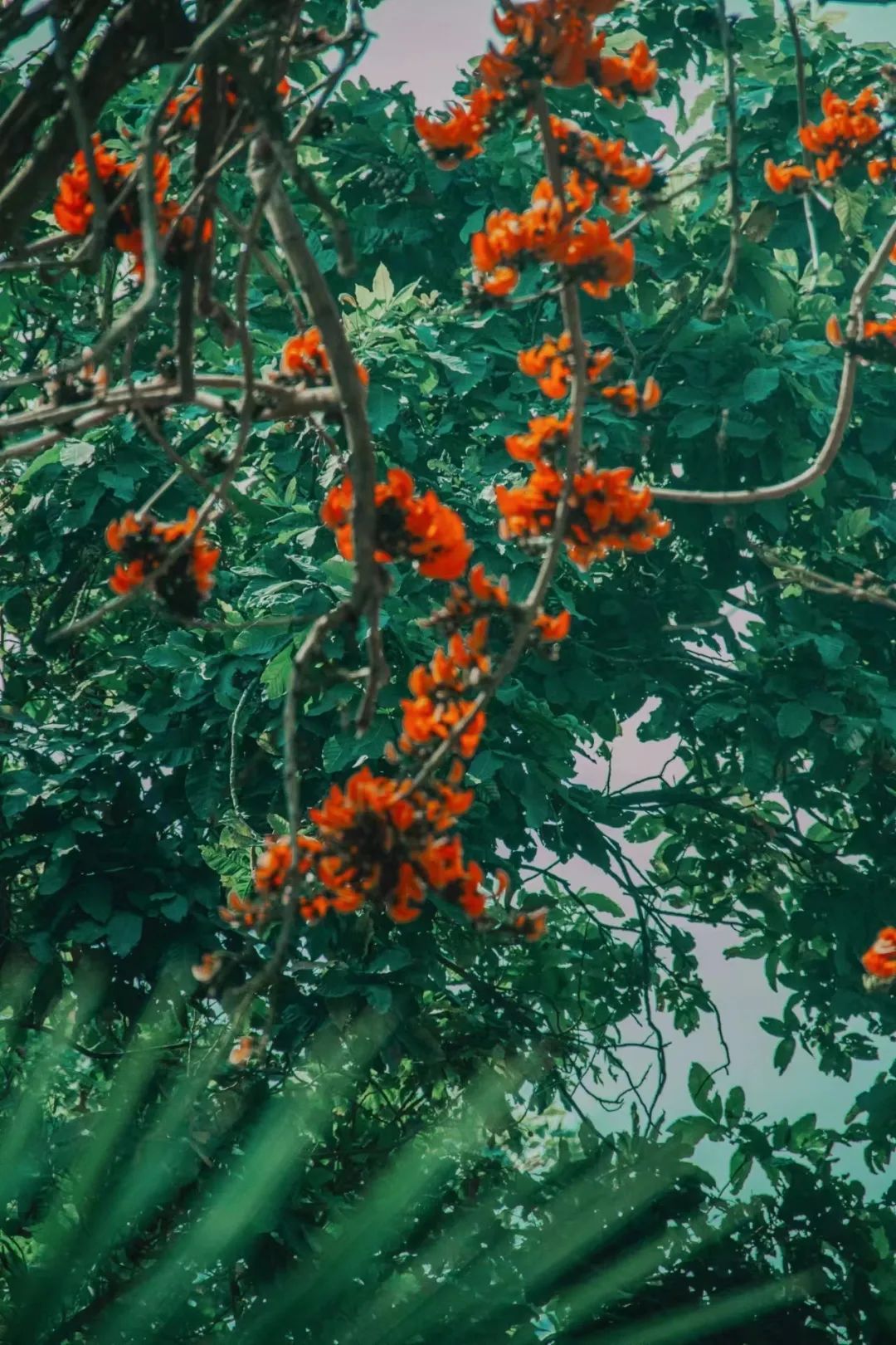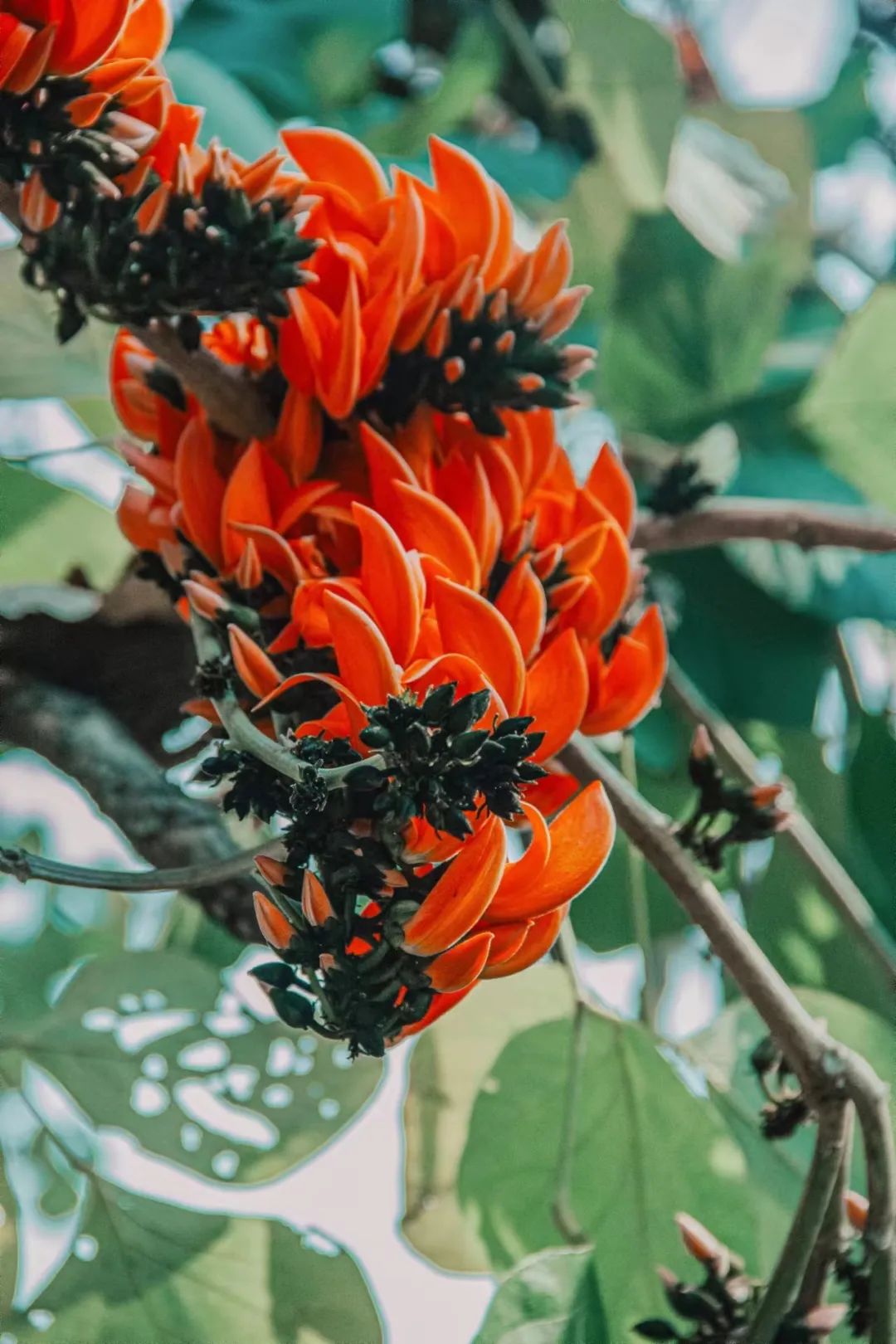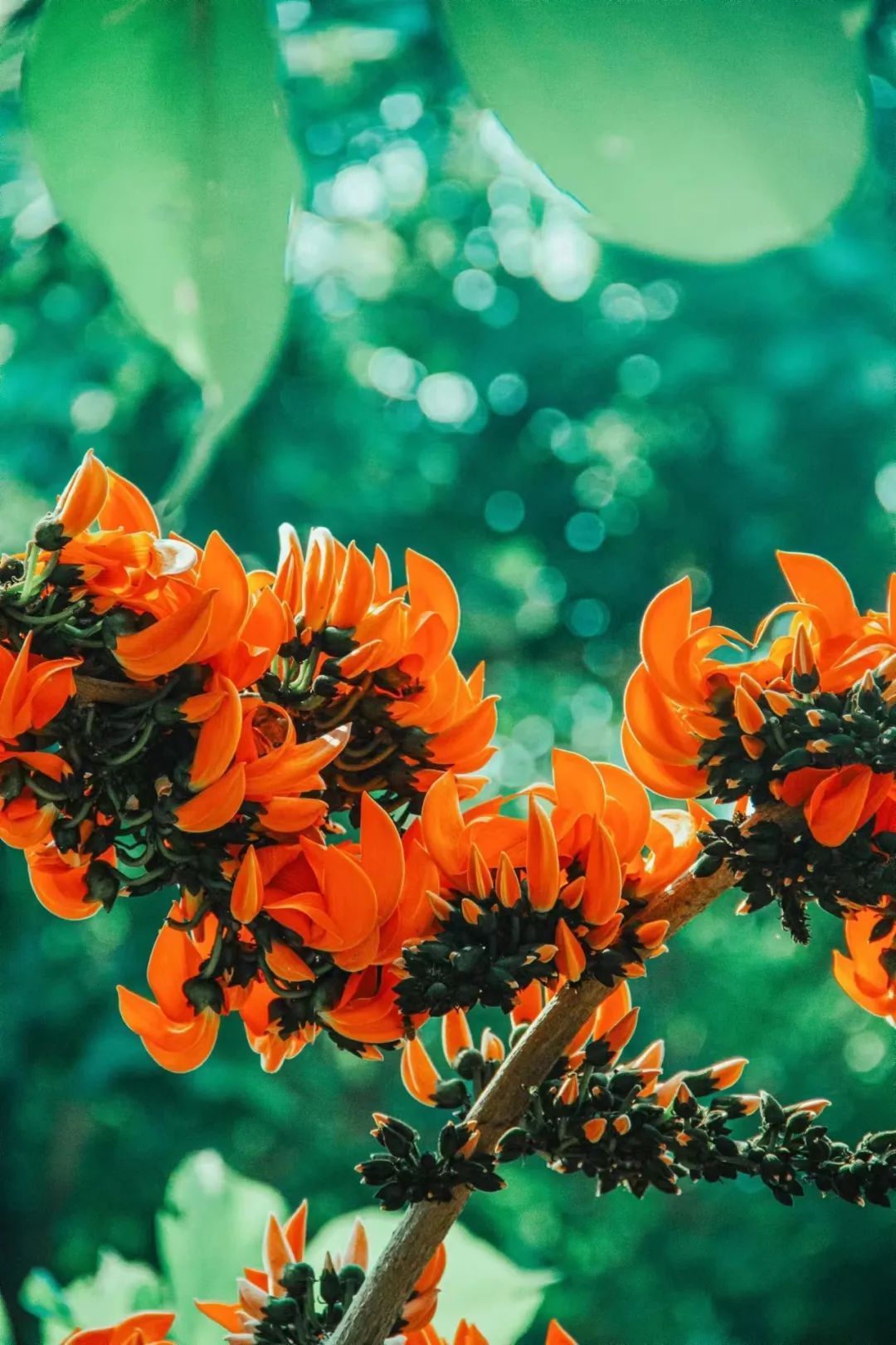 在施甸县旧城乡,有一棵挺拔的大树,树冠浓郁优美、叶大秀丽、花型奇特、花色橙红,耀眼且热烈。枝干高高耸起,旁逸斜出,微风轻拂,枝叶随风摆动,阳光从枝叶间洒落,星星点点的光与影讲述着树与阳光的浪漫故事。