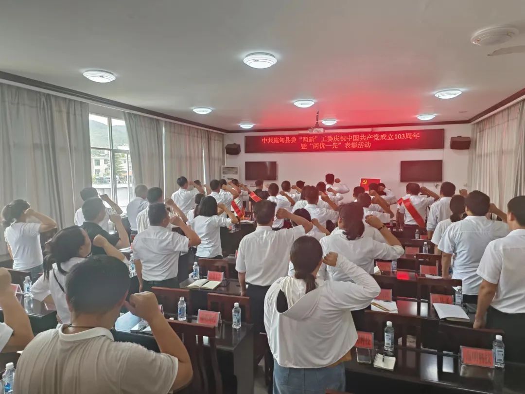6月28日,县委“两新”工委组织25个成员单位、下设7个党支部党员以及县委社会工作部党支部、富滇银行施甸县支行党支部党员共计50余人开展了庆祝中国共产党成立103周年暨“两优一先”表彰活动。
